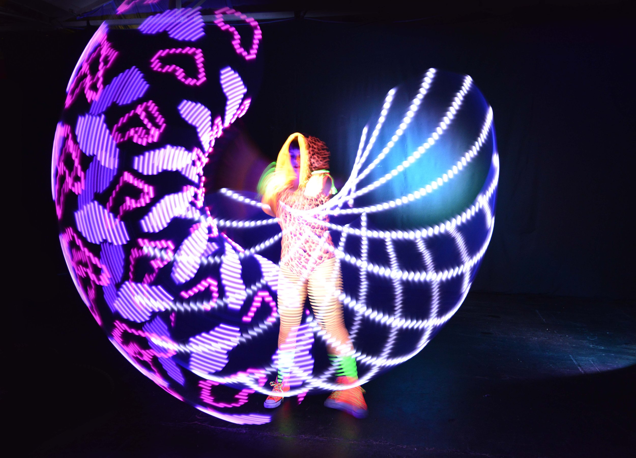 with an incredible hula hoop show!
